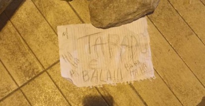 “Tarado é bala, há, há, há, há, há, há”, diz o escrito a mão em um papel tipo folha de caderno indicando a motivação do crime.
