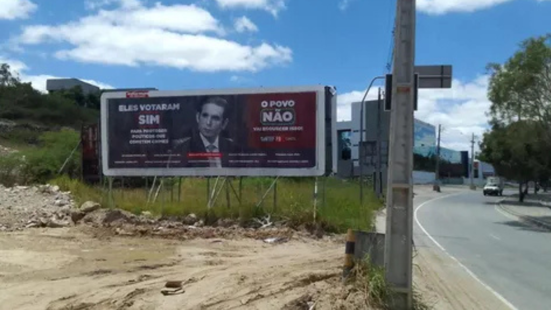 “Eles votaram SIM para proteger políticos que cometem crimes. O povo NÃO vai esquecer isso!”, dizia um dos outdoors instalados em Campina, com a fotografia do presidente.